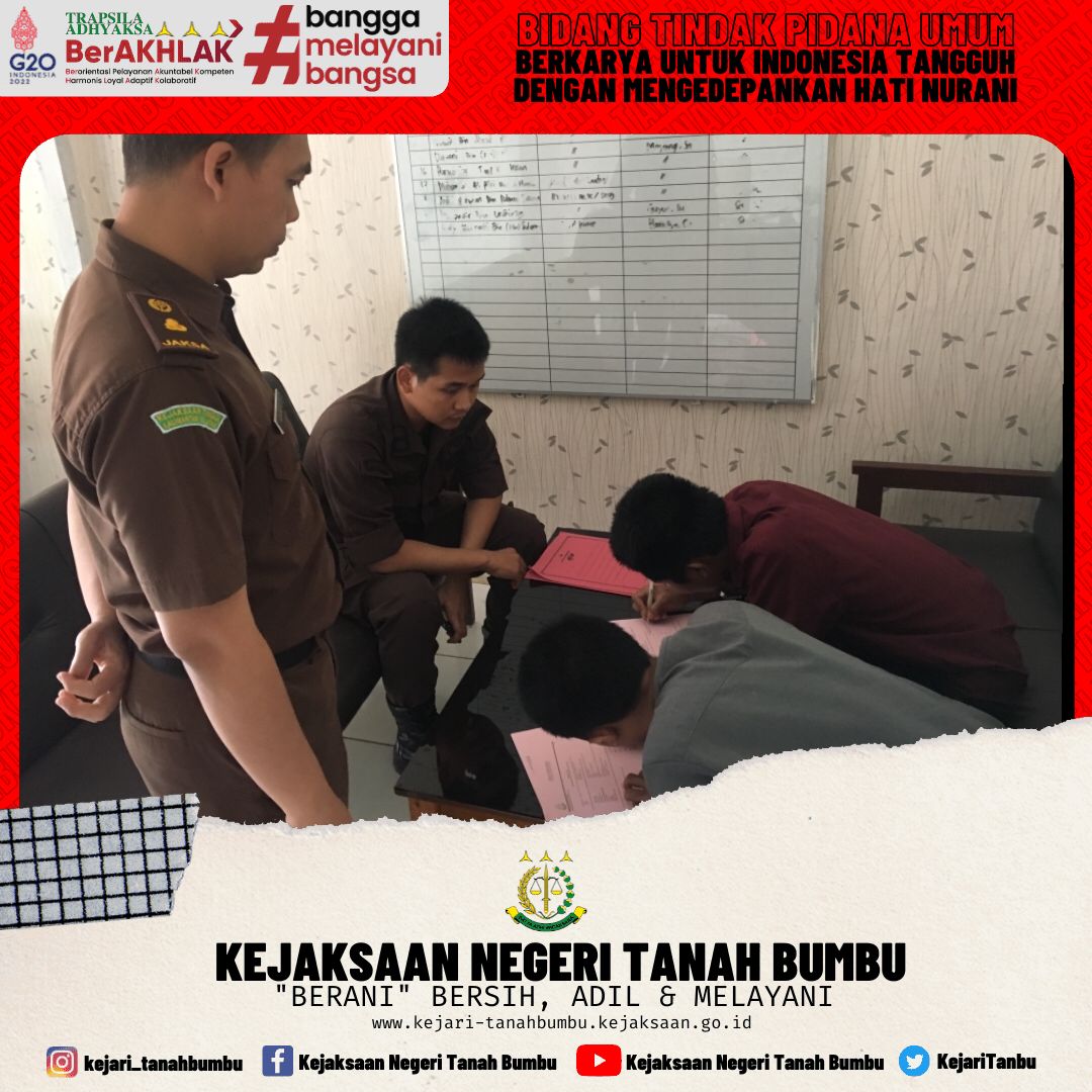 Pada Hari ini Kamis 13 Oktober 2022 Seksi Tindak Pidana Umum Kejaksaan Negeri Tanah Bumbu menerima penyerahan tersangka dan barang bukti (tahap2) dari Penyidik Polres Tanah Bumbu sebanyak 4 perkara untuk dilakukan pemeriksaan guna dilimpahkan ke Tahap Penuntutan di Ruang Tahap II Kejaksaan Negeri Tanah Bumbu.