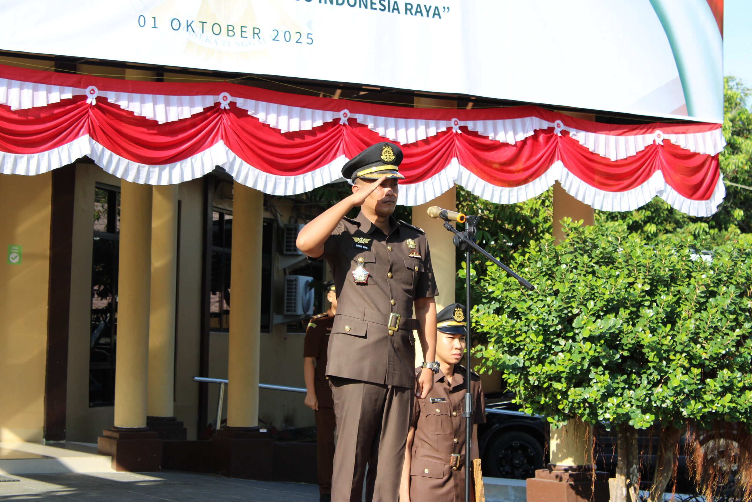 Rabu, 01 Oktober 2025 bertempat di Lapangan Upacara Kejaksaan Negeri Tanah Bumbu telah dilaksanakan Upacara Peringatan Hari Kesaktian Pancasila yang dipimpin oleh Kepala Seksi Intelijen, Wazir Iman Supriyanto, S.H., M.H. Upacara tersebut juga diikuti oleh seluruh Kasi, Kasubag, serta Jaksa dan pegawai pada Kejaksaan Negeri Tanah Bumbu.