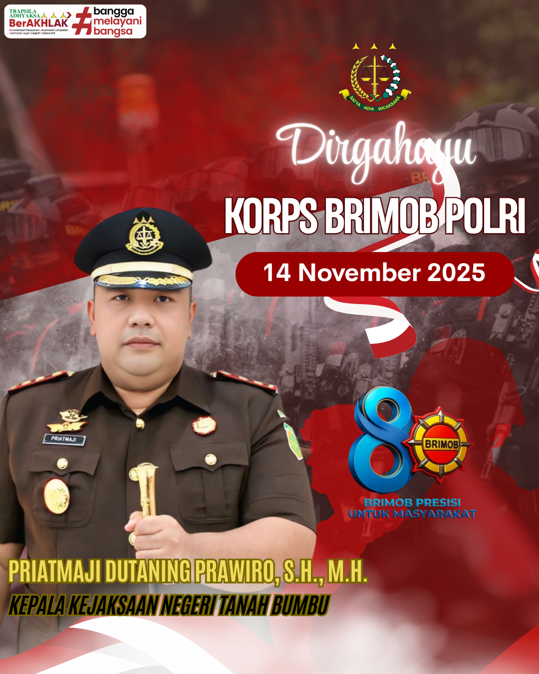 Kepala Kejaksaan Negeri Tanah Bumbu, Priatmaji Dutaning Prawiro, S.H., M.H. mengucapkan Dirgahayu Korps BRIMOB POLRI ke-80 th 14 November 2025.