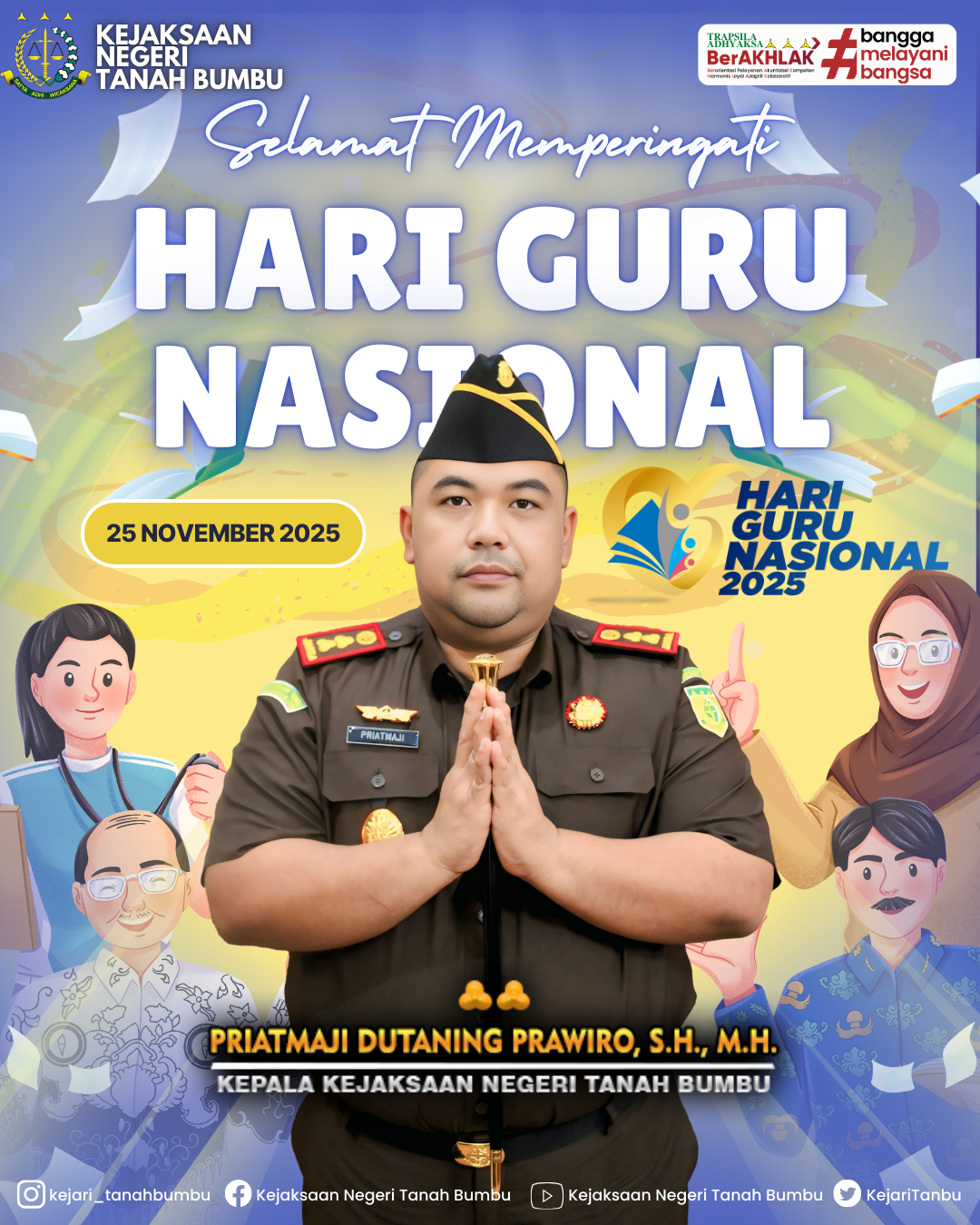 Kepala Kejaksaan Negeri Tanah Bumbu, Priatmaji Dutaning Prawiro, S.H., M.H. beserta jajaran mengucapkan Selamat Memperingati Hari Guru Nasional, 25 November 2025.