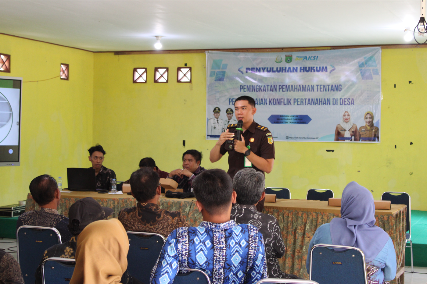 Kami, 27 November 2025 Kejaksaan Negeri Tanah Bumbu yang diwakili oleh Jaksa Fungsinal Bidang Intelijen, Yosia Ihan Ardian, S.H. menjadi narasumber dalam penyuluhan hukum bertemakan “Peningkatan Pemahaman Tentang Penyelesaian Konflik Pertanahan di Desa” bersama dengan Bagian Hukum Pemerintah Daerah Tanah Bumbu yang bertempat di Kantor Kecamatan Mantewe.
